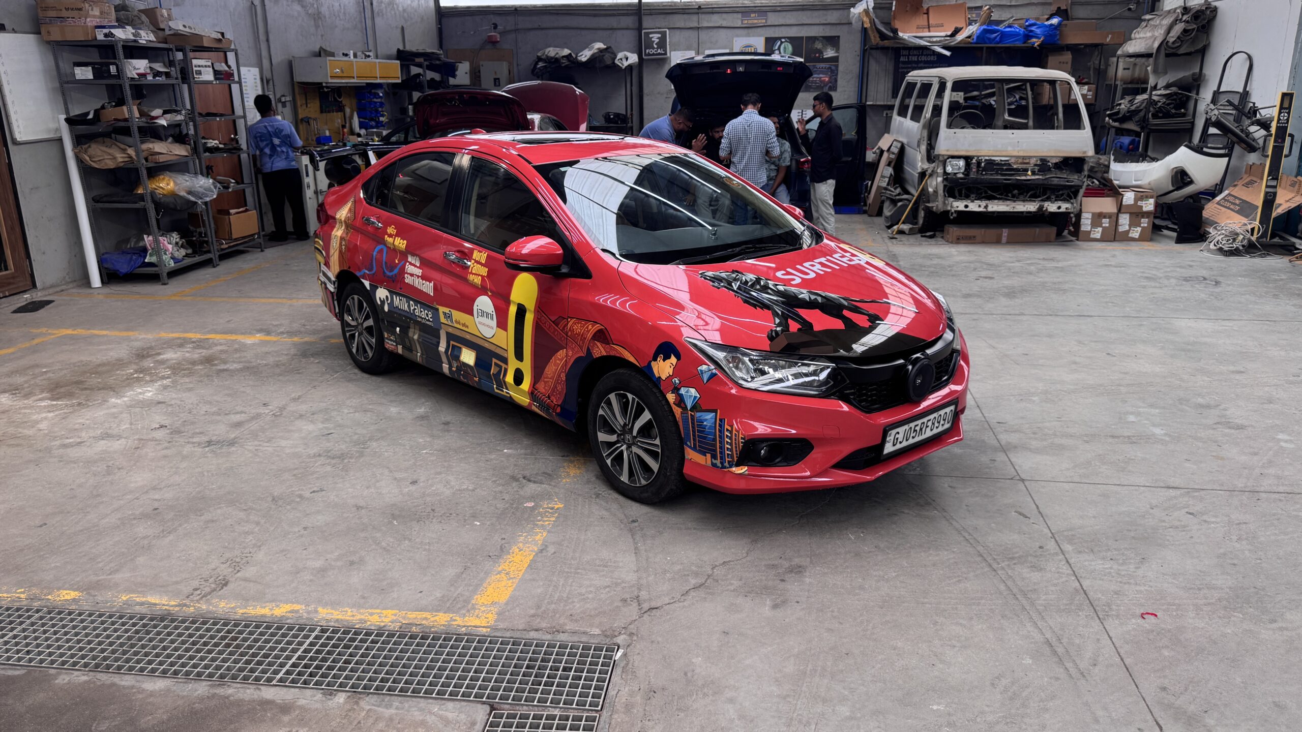 To complete the look, we wrapped the Honda City in a striking gloss finish design that reflects the bold identity of Surties.