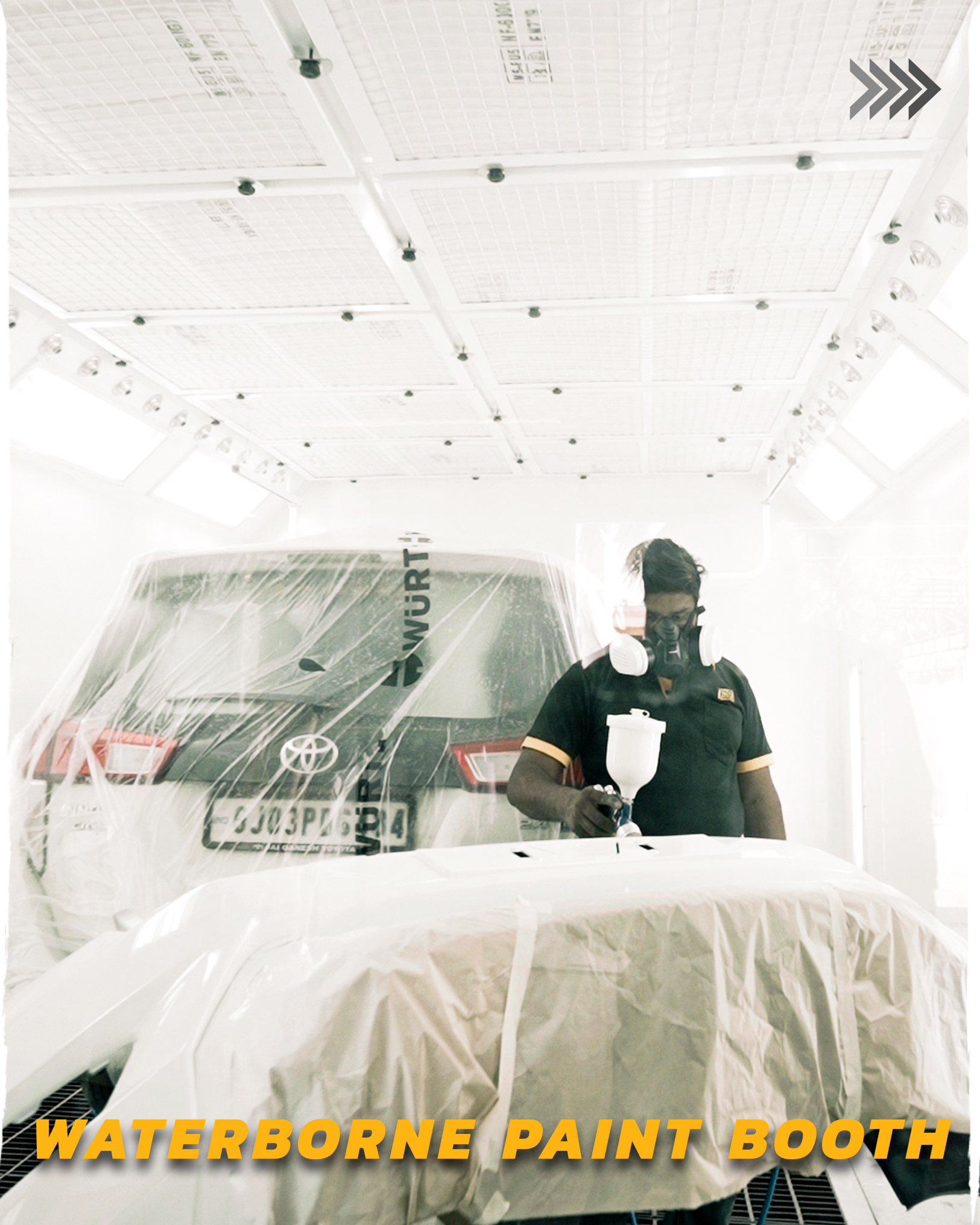 Additionally, the Color Mixing Room guarantees a 100% color match for every repaint. Furthermore, a Display Area gives customers a live car configuration experience — something rarely seen in India.