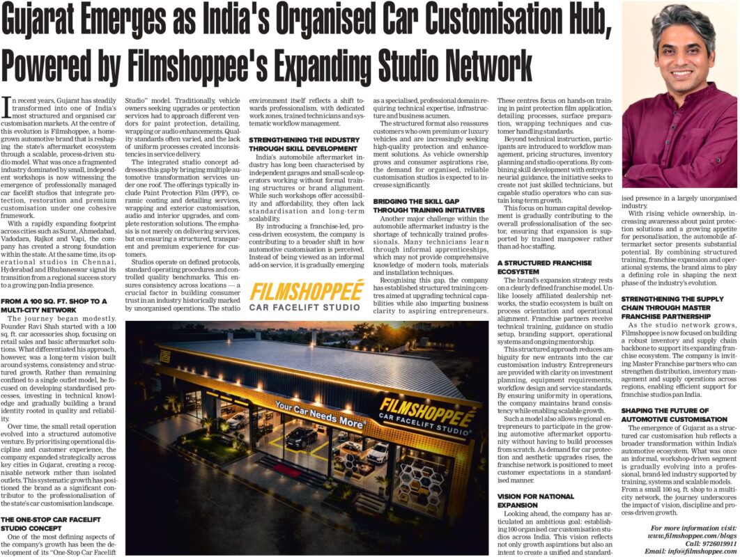 Gujarat Emerges as India’s Organised Car Customisation Hub, Powered by Filmshoppee’s Expanding Studio Network